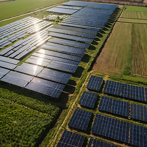 Energia limpa: solar, eólica, PCHs, biomassa. Substituição de fontes fósseis por renováveis em escala industrial.